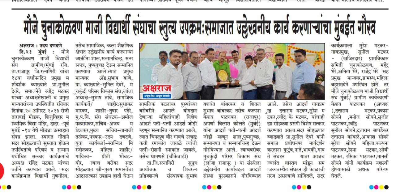 मौजे चुनाकोळवण माजी विद्यार्थी संघ, चुनाकोळवण १३.०८.२०२३